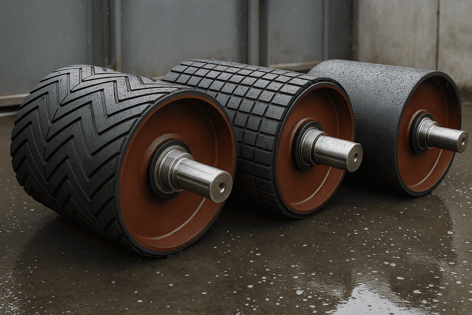 Повышенная влажность, конденсат, мокрый материал и регулярная мойка водой делают зону привода одним из самых проблемных участков конвейерной линии. Вода и шлам снижают коэффициент сцепления, усиливают коррозию и в разы ускоряют износ как барабана, так и ленты. Поэтому при таких условиях важно не просто “обрезинить” вал, а осознанно выбрать тип футеровки приводного барабана под конкретную влажную среду, режим пуска и свойства материала.
