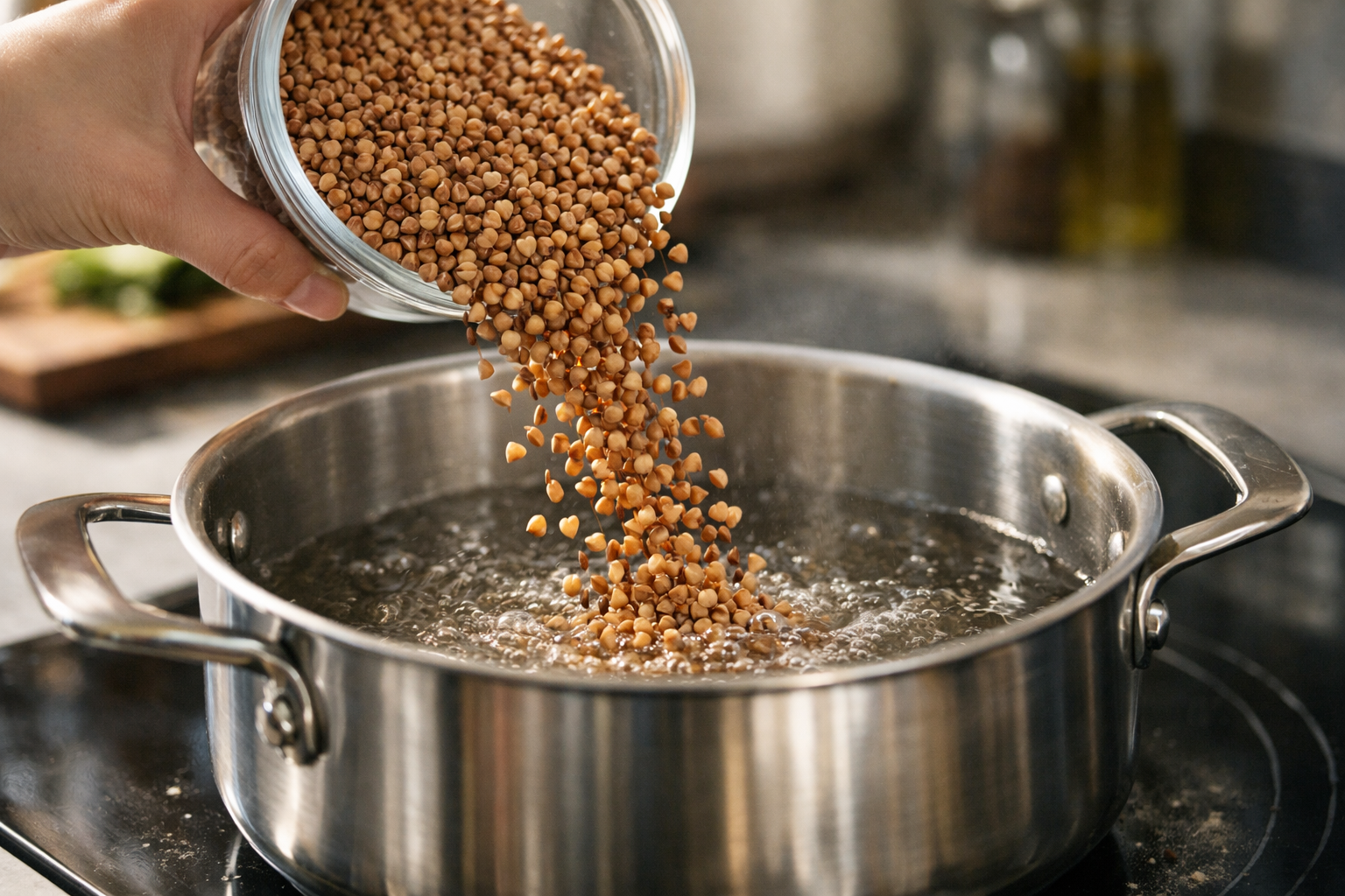 - Всипте склянку промитої гречки